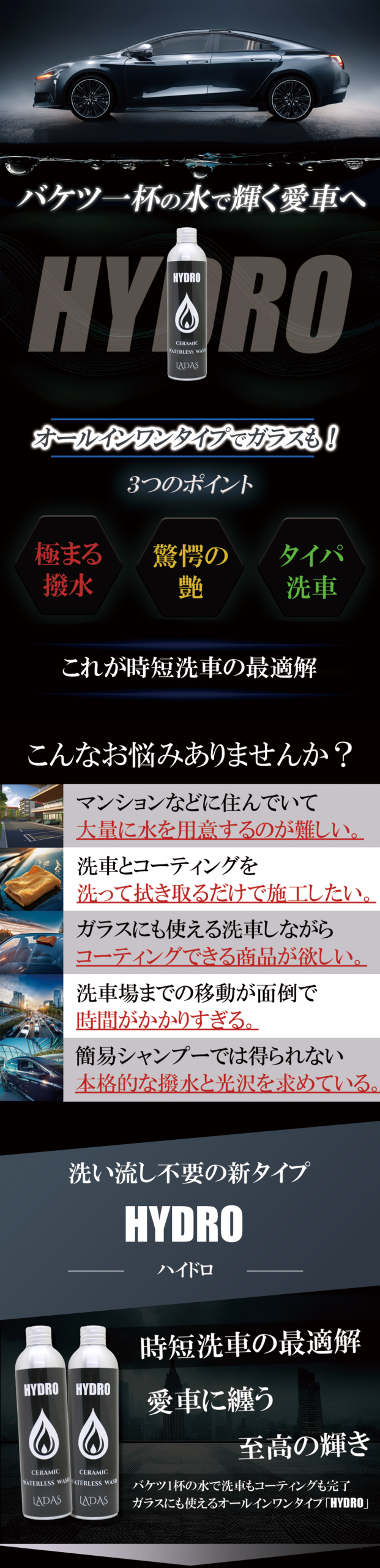 HYDRO — LADAS史上、最も手軽で、最も革新的な“洗う×コーティング”のハイブリッド洗車剤